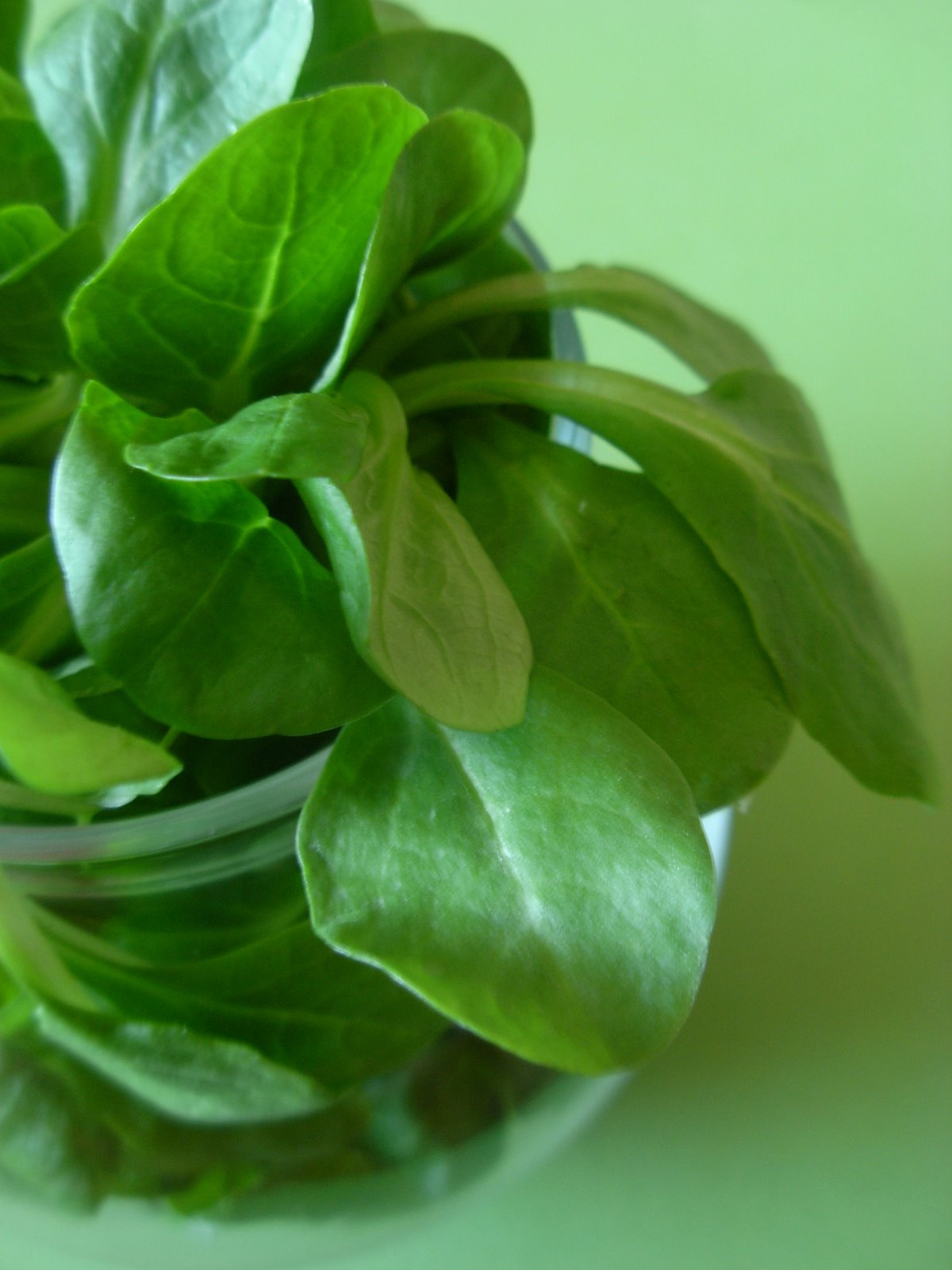 Let me tell you about mâche, also known as “lamb’s lettuce”: It’s been cultivated since the 17th century here in France’s Loire valley. It is in season from Mid-August through December, making it ideal for holiday fare. It is nutritionally rich, particularly in terms of its Omega 3 oils and in having three times the iron of spinach. So when people ask you “Where do you get your iron from?” you can reply “From Emily’s mâche salad!”