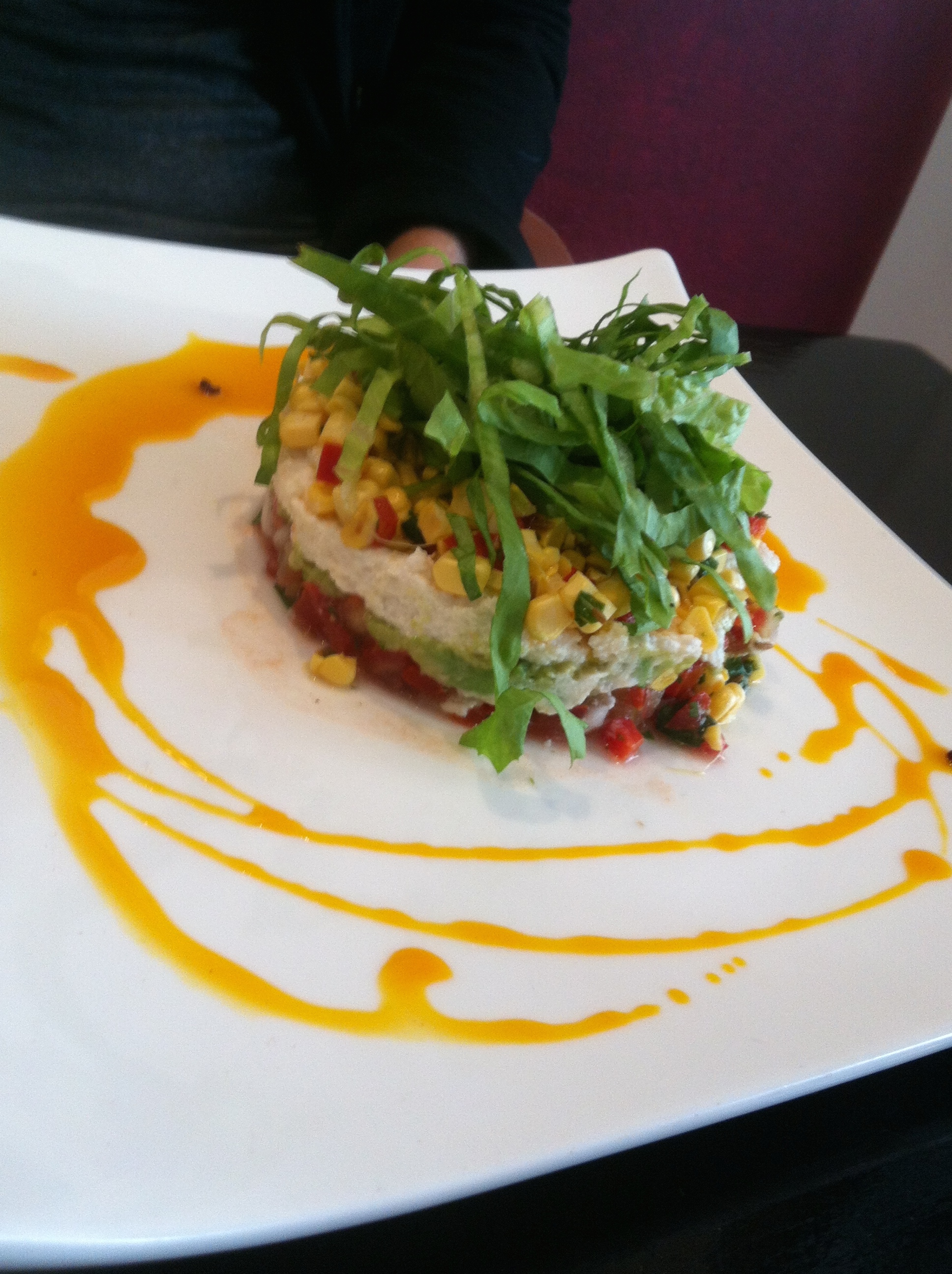 - the special of the day which was a Mexican layered salad with tomatoes, guacamole, delicious nut cheese and fresh corn, topped with greens