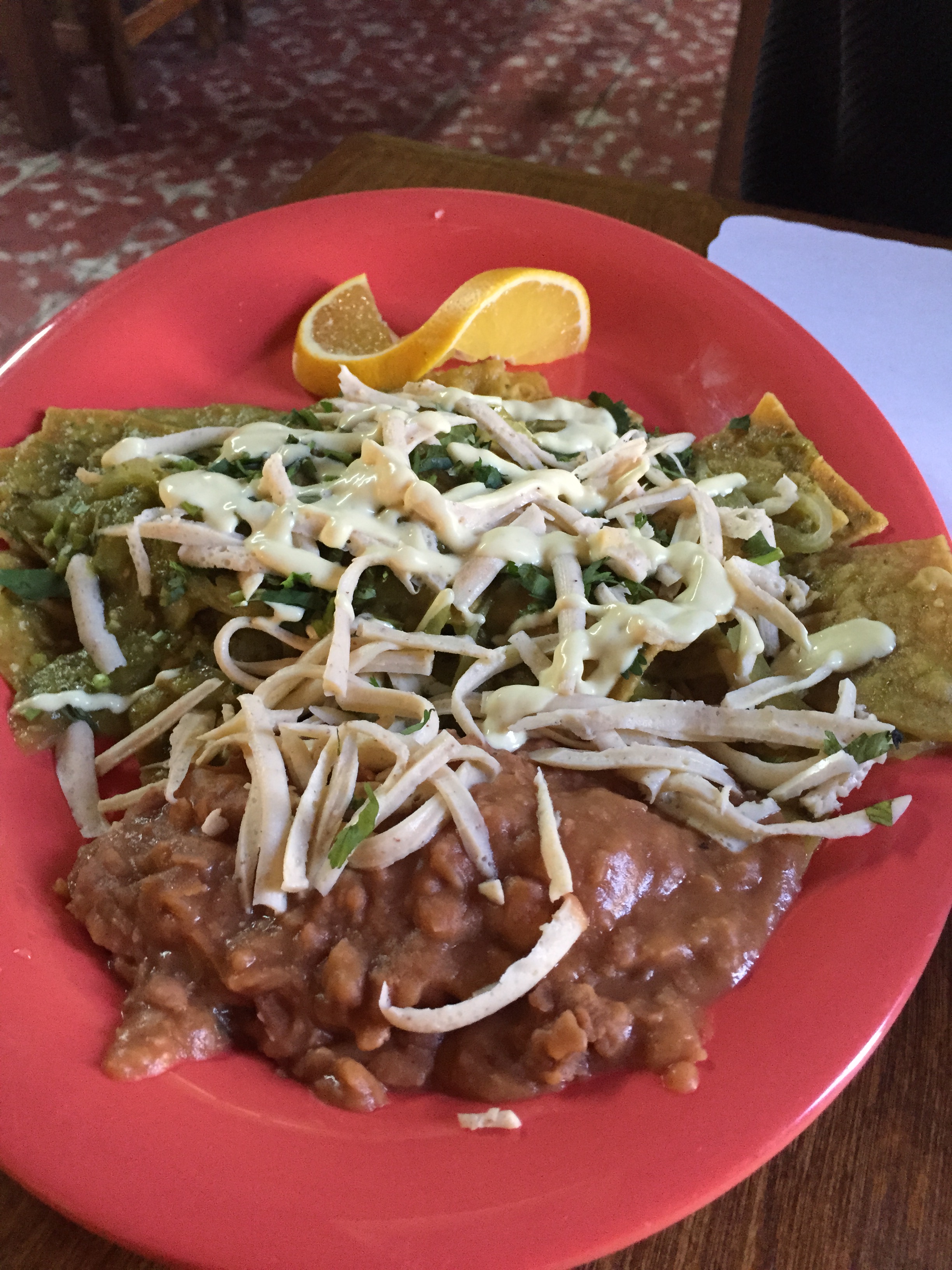 The menu is broken down into three main sections: quesadillas (with almond cheese), huaraches and tacos. There’s a large variety to choose from and they offer daily specials such as chilli relleno.
