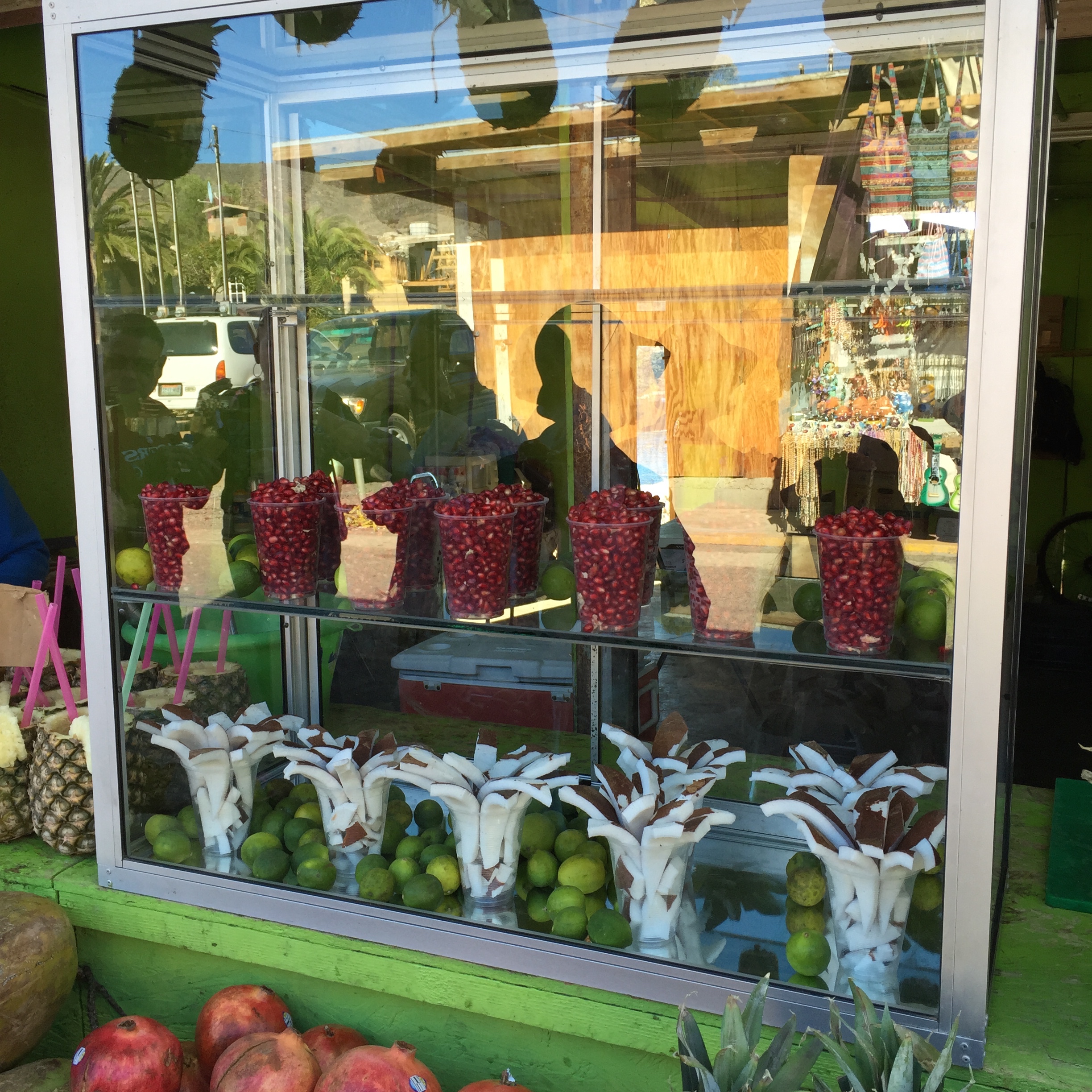 As you drive around Baja, you’ll see plenty of small fruits stands offering fresh coconut to drink, fruit cups of mango and jicama and other fruity treats. I loved just pulling over, watching the guy prepare the fruit with his machete and then enjoying the delights. I also really liked the combination of pineapples drizzled with freshly squeezed lime juice and dusted in chill powder – so simple, but so delicious.