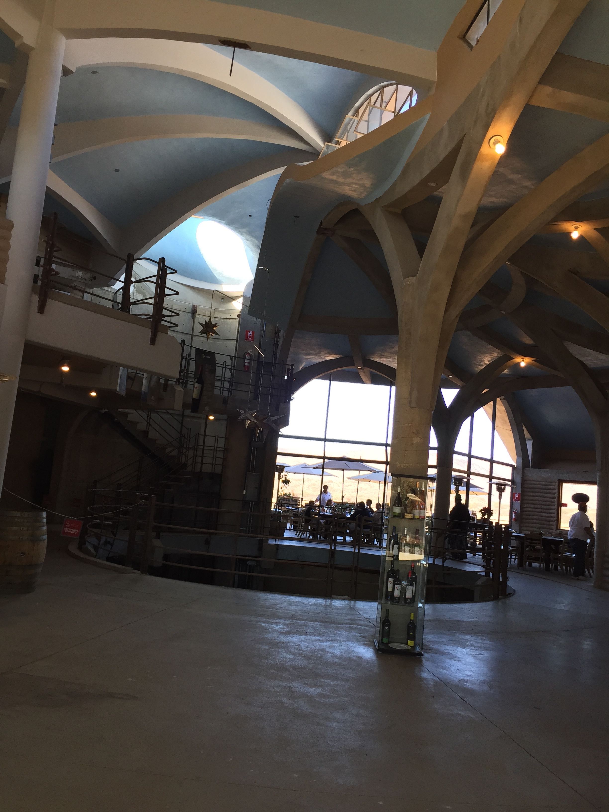 Sticking with the modernist theme, we hit the Origen restaurant at the Encuentro hotel and Vineyard for some snacks and drinks. We enjoyed a delicious guacamole with pistachio nuts in it, along with herb tea and local beer and watched their helicopter put on a little show for us. The view from the balcony was beautiful and serene.